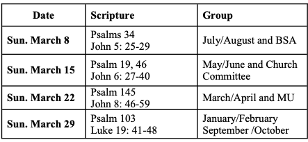 As part of your contemplation and quiet time you may use your favourite psalm(s) or any psalm and prayer(s) from the list below.